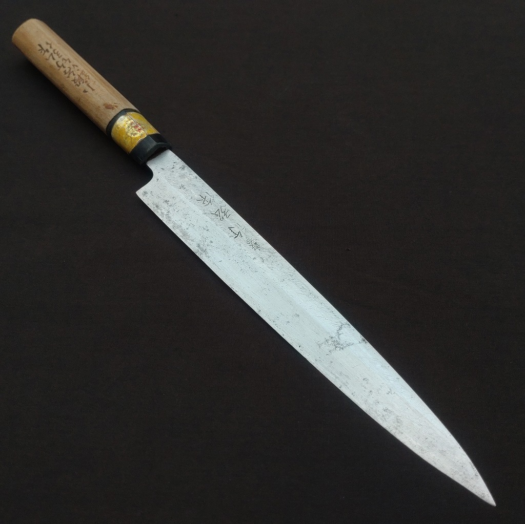 > 小鍛冶 竹弘作 刺身包丁 刃長約200㎜ 峰厚約3.2㎜ 片刃 裏スキ 柳刃包丁 和包丁 正夫 やなぎ 庖丁 日本製 Japanese Sashimi knife 【6350】