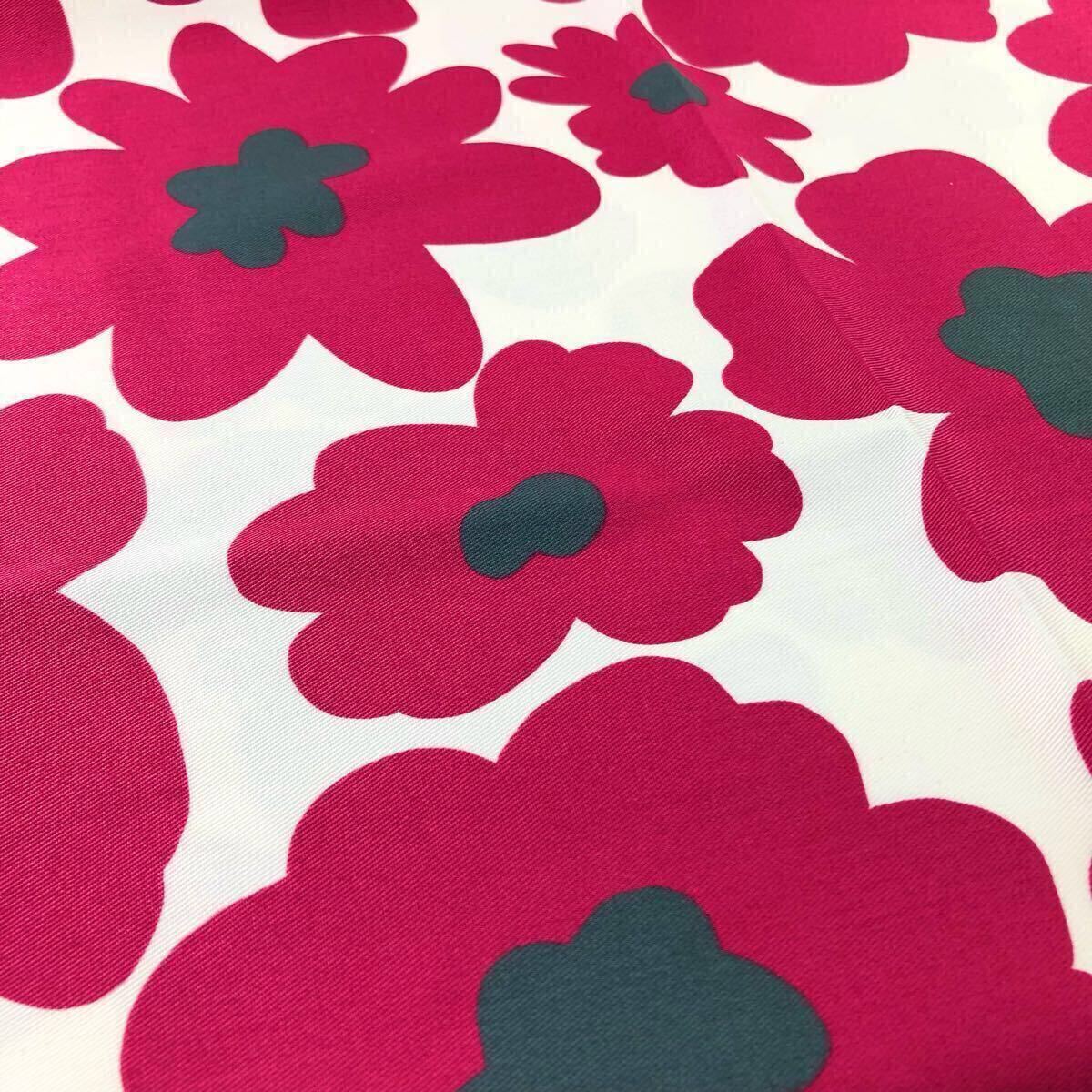 - 日本製 1m ツイル 大きなお花の北欧プリント お花柄 コットンこばやし 110×100 ローズピンク ツイル 生地 はぎれ