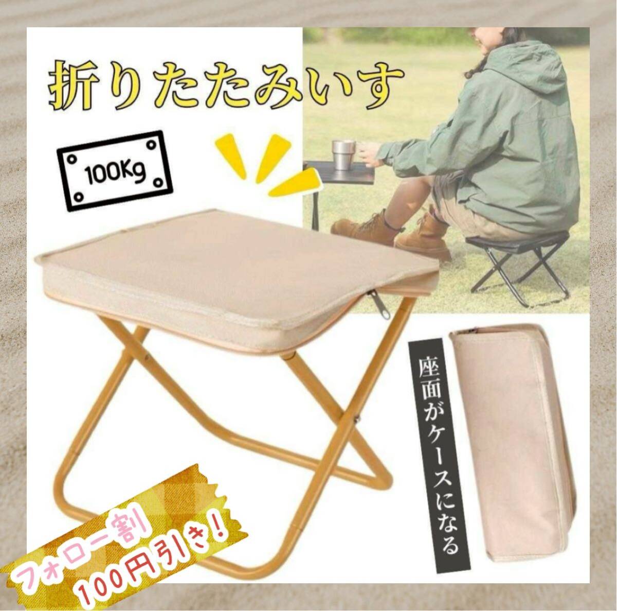 - 折りたたみチェア 折りたたみ椅子 携帯 軽量 ジッパー収納 耐荷重100kg ベージュ