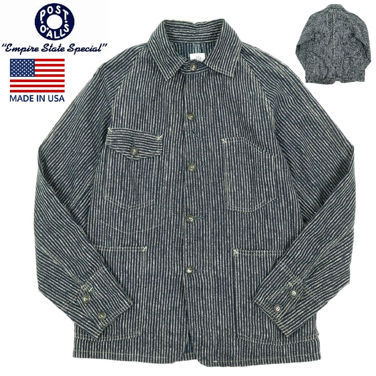 > 【S3565】【美品】【USA製】POST O?ALLS ポストオーバーオールズ カバーオール ジャケット ストライプ サイズS