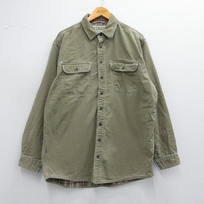 - XL/古着 エルエルビーン LLBEAN 長袖 ブランド シャツ メンズ 00s ロング丈 コットン 緑系 グリーン デニム 内側フランネル