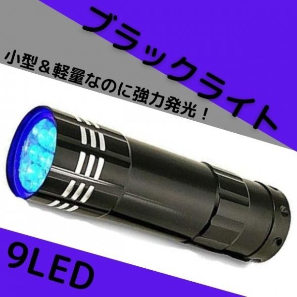 - ブラックライト 9LED UVライト 紫外線 蓄光 釣り ネイル 単四電池 硬化