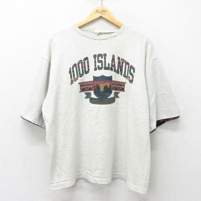 > XL/古着 半袖 ビンテージ Tシャツ メンズ 90s カナダ 大きいサイズ コットン クルーネック 薄グレー他 霜降り 24jun13 中古