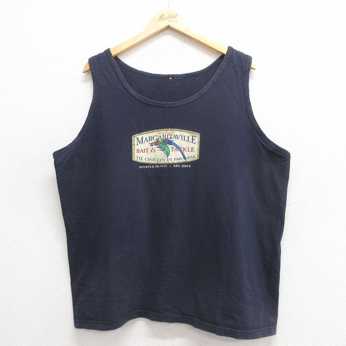 - XL/古着 タンクトップ メンズ ジミーバフェット 鳥 大きいサイズ 黒 ブラック 25may28 中古