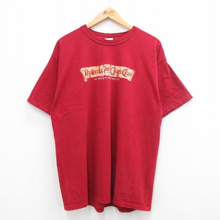 - XL/古着 半袖 ビンテージ Tシャツ メンズ 00s パイレーツオブケープコッド スカル コットン クルーネック エンジ 24jun11 中