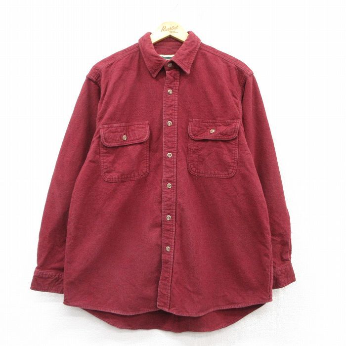 > XL/古着 長袖 ヘビー フランネル シャツ メンズ コットン エンジ 25mar07 中古 トップス