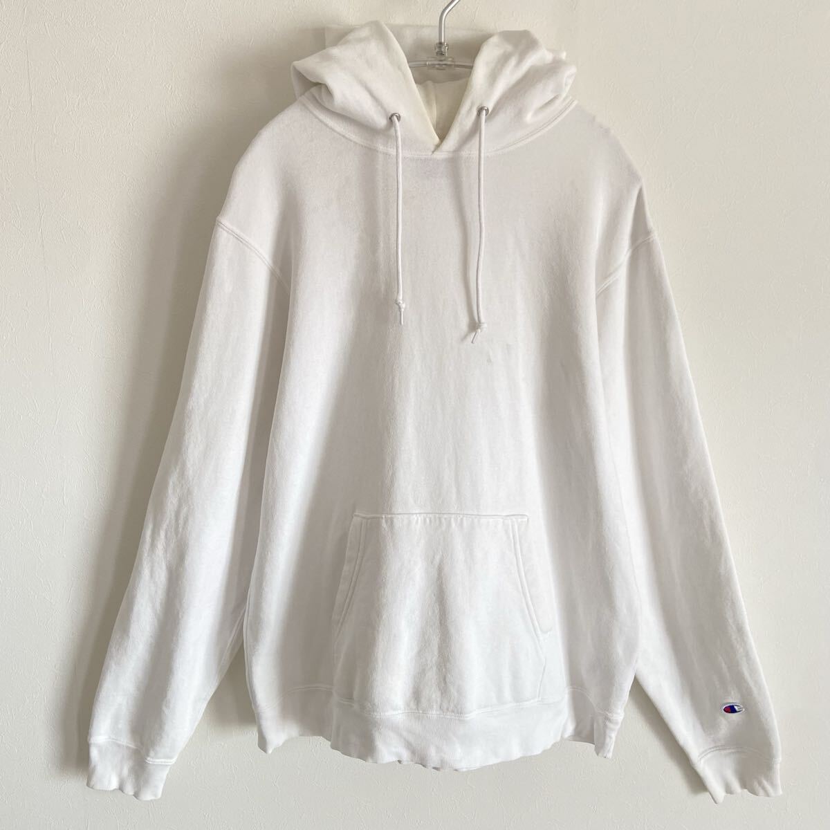 - 【チャンピオン/USA製】9oz.TREEY FLEECE スウェット プルオーバーパーカー/白/L表記/ヴィンテージ古着/衝撃プライス!1点限定販売★A54