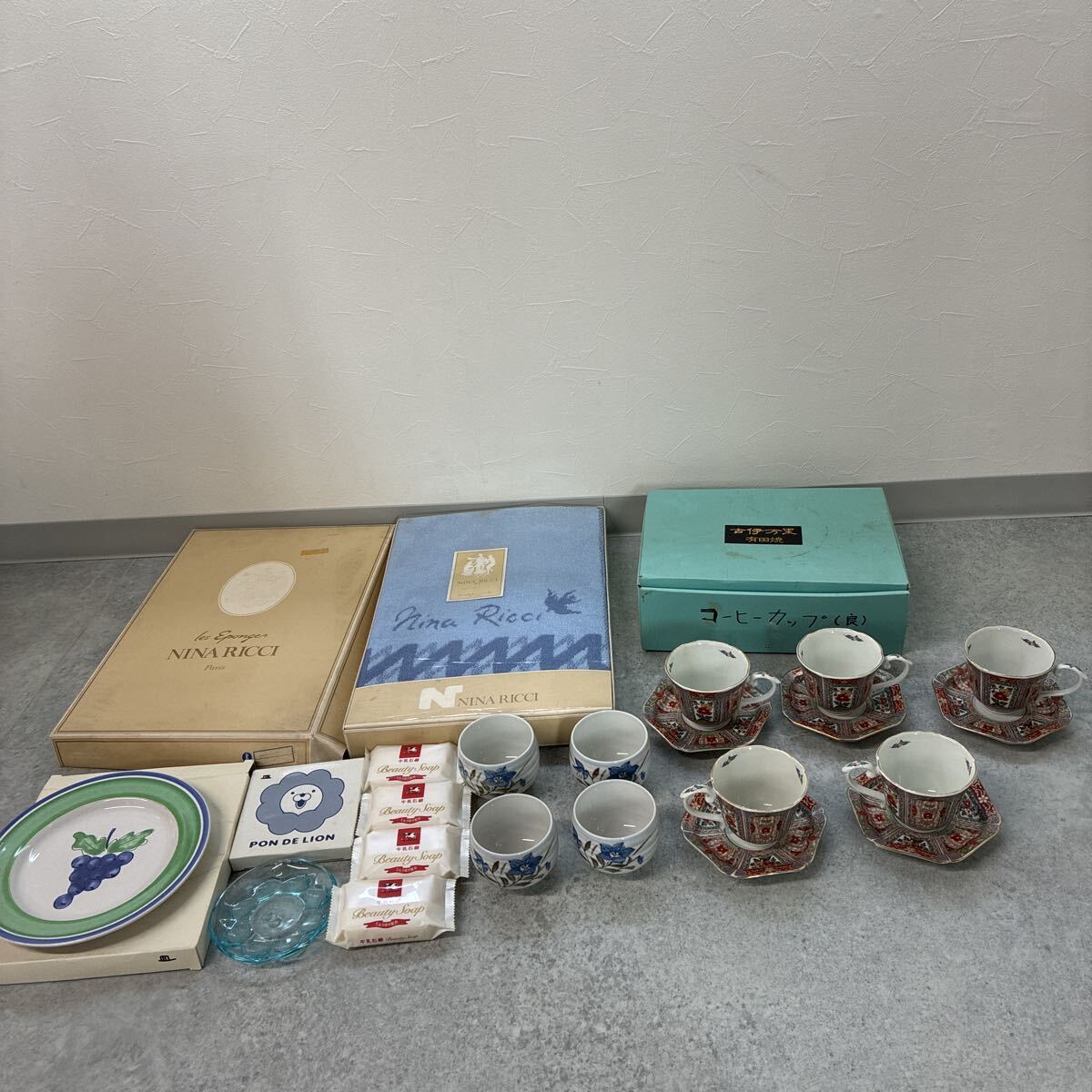 > コーヒカップ&ソーサー5客セット。有田焼。その他.湯呑み4個。中皿、ガラス小皿。ニナリッチ.バスタオル。牛乳石鹸4個