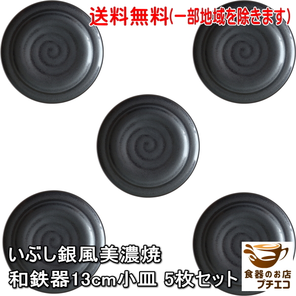 - 送料無料 いぶし銀風 和鉄器 13cm 小皿 5枚 セット 電子レンジ可 食洗機対応 美濃焼 日本製 醤油皿 平皿 取り皿