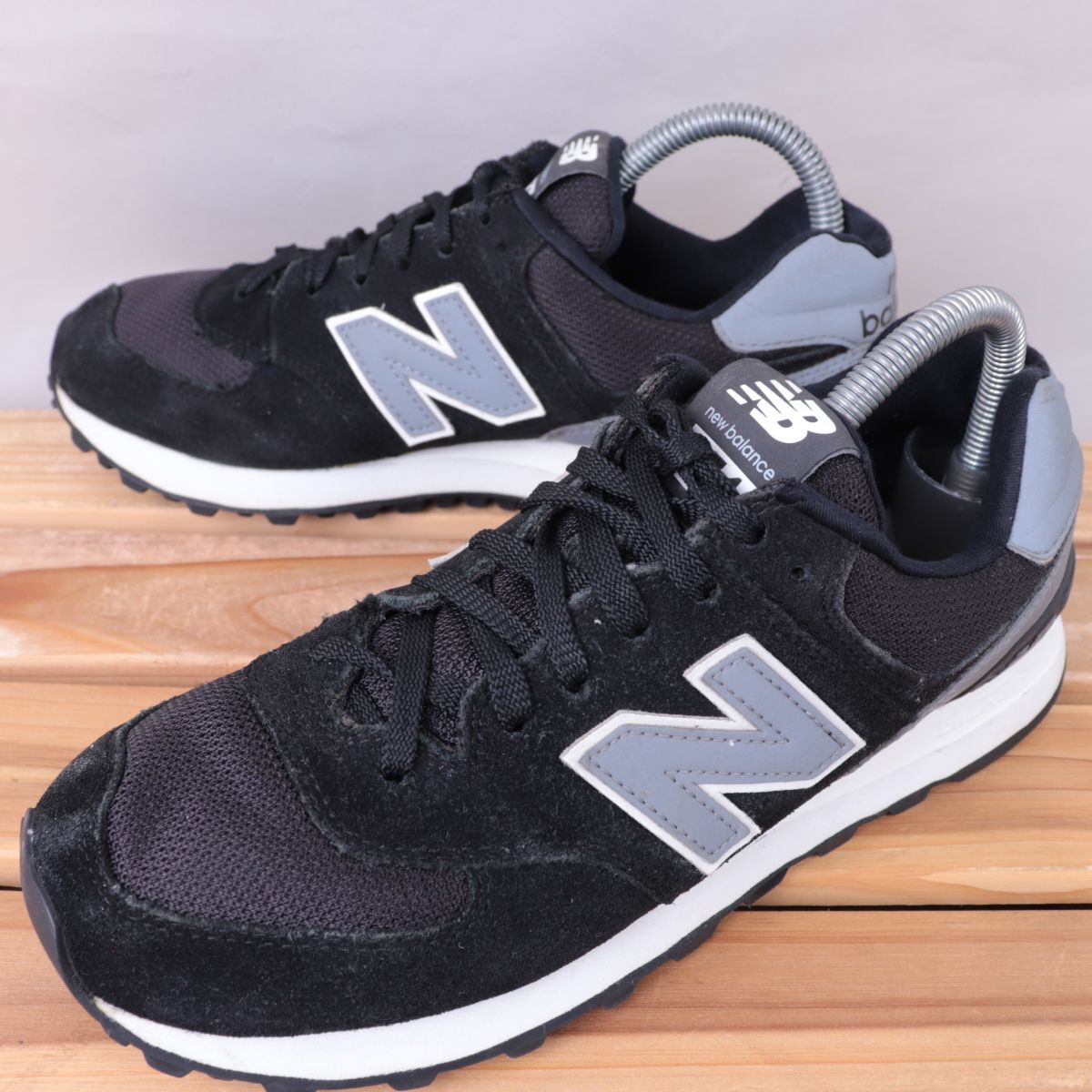 > z1932【574】ニューバランス US7 25.0cm/黒 ブラック グレー newbalance メンズ ユニセックス スニーカー 中古