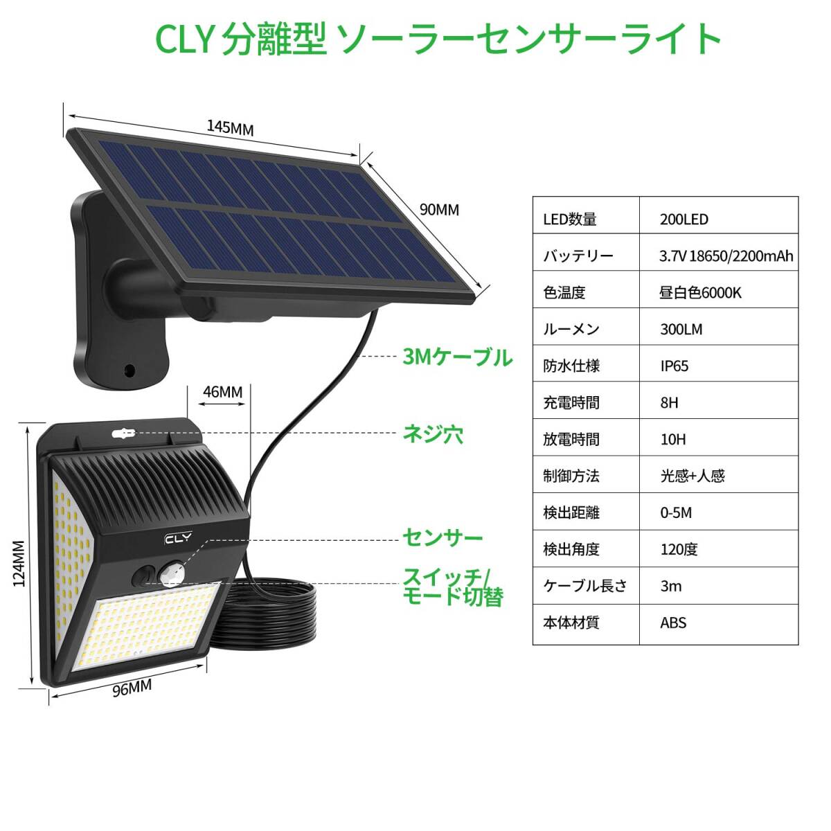 - 分離式 LED 投光器 防犯 3色切替 ソーラーライト 屋外 センサーライト