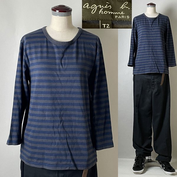 > ★並品【定価15,400円程 日本製】 agnes b.homme EH28J008 (J008前身モデル) アニエスベー オム 細ボーダー 七分袖 ロンT Tシャツ T2 長袖
