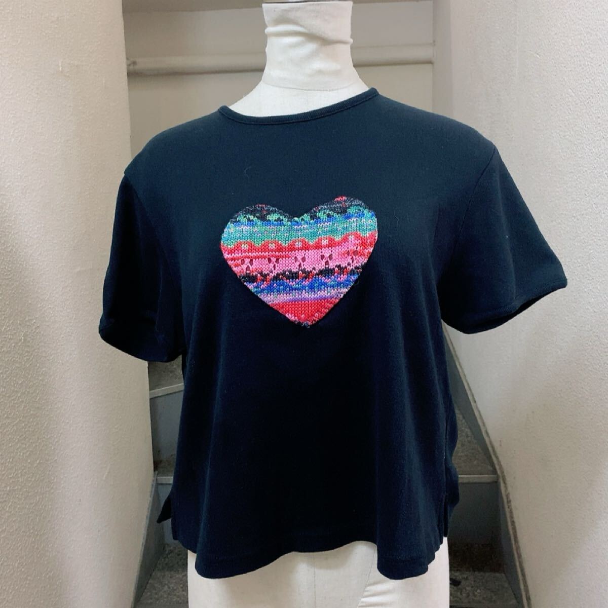 - モリオカサチコ 半袖トップス/黒/ハート柄/MORIOKA SACHIKO