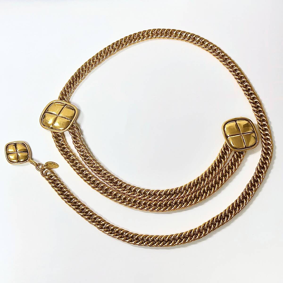 - CHANEL シャネル ヴィンテージ マトラッセ チェーン ベルト ひし形 ゴールド 86cm レディース アクセサリー ファッション小物 美品
