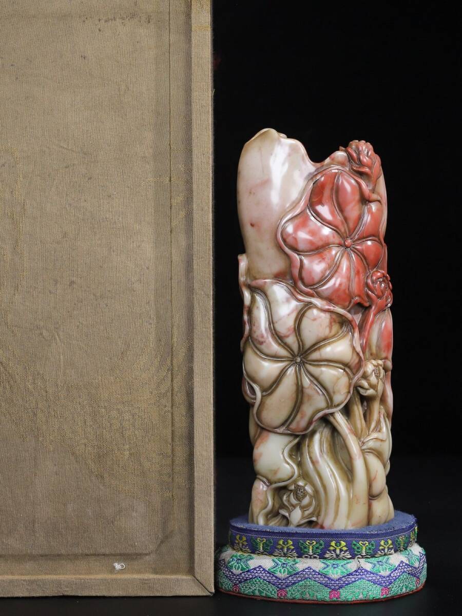 - 永し 清時代 壽山芙蓉石彫 一品青蓮 荷花筆筒 手彫り 印章 印鑑 印璽 極細工 置物擺件 古美術品 時代物 古董品 旧家蔵出 中国唐物 1415g