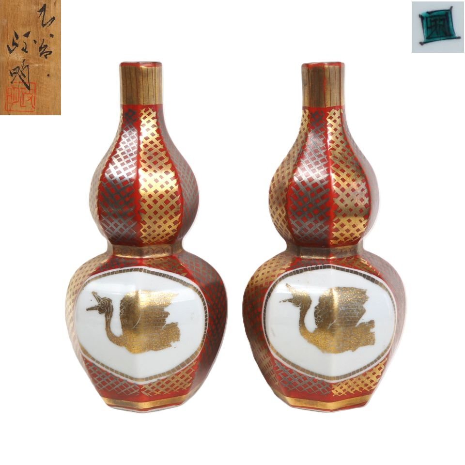 - 【金富士】日展作家、現代美術展審査員 九谷焼名工 山岸政明作 瑞鳥図徳利 共箱