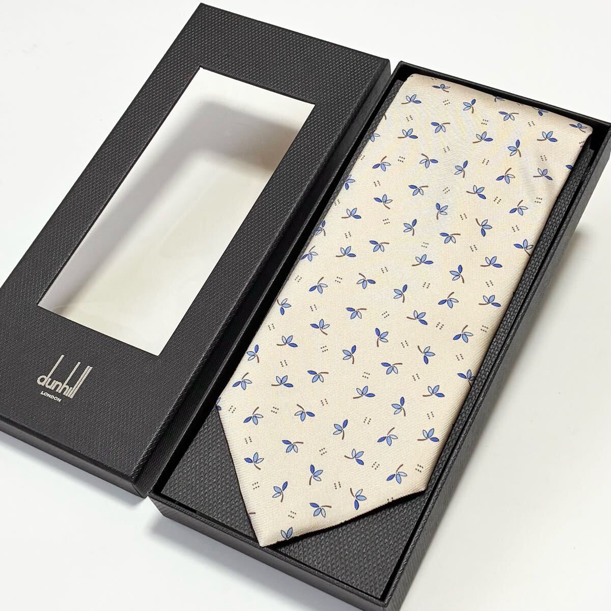 - ★未使用保管品 dunhill ダンヒル ネクタイ シルク100% 総柄 アイボリー系 メンズ 男性【鑑定済み 本物保証】