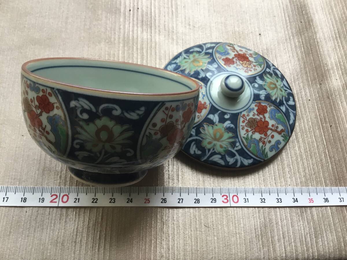 - お碗 蓋付きセット 焼きもの たいへん可愛らしい図柄 落ち着きの色合い 満遍となく花柄紋様 存在感溢れる 使い勝手 美しい器