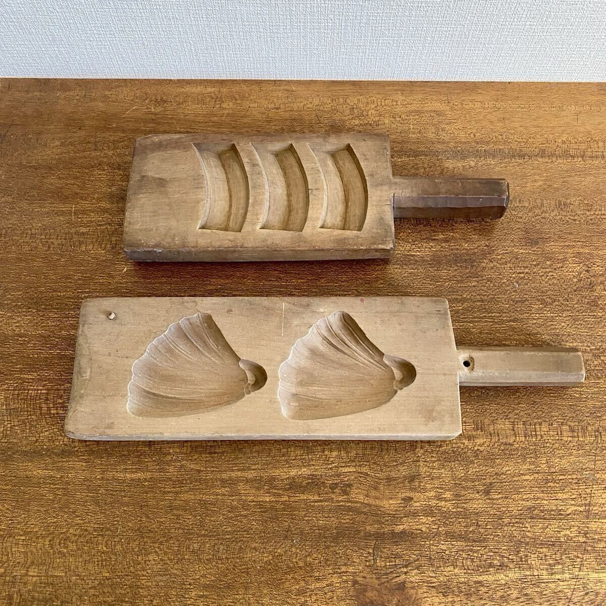 - アンティーク 菓子木型 菓子型 2点セット / 木製 落雁 和菓子 古道具 当時物 / A