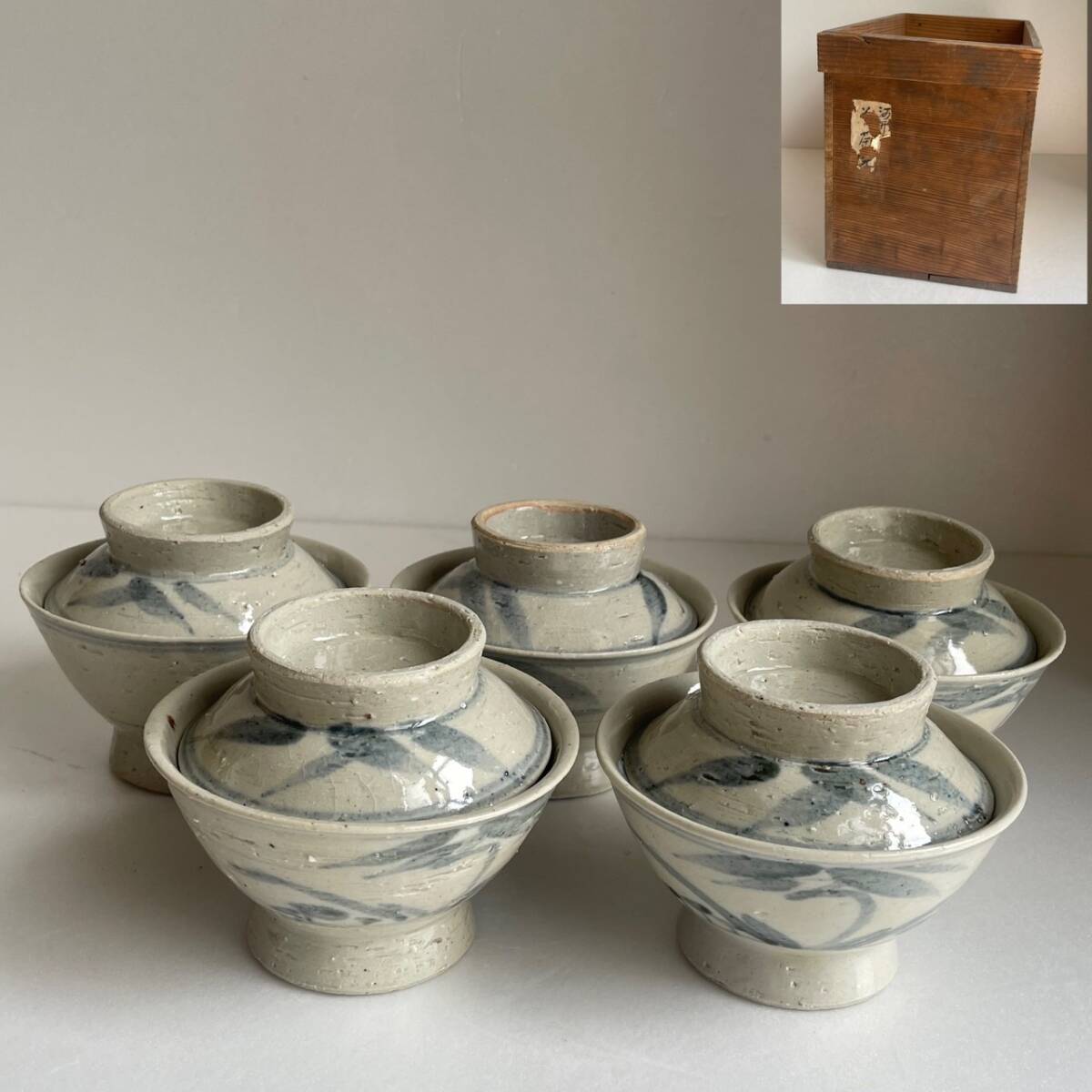 - 【和美】瀬戸 蓋茶碗 五客 安南 木箱付(蓋なし)蓋物 蓋付 碗