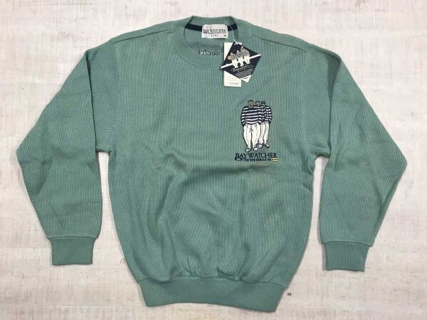 > 訳あり新品 ベイウォッチャー BAY WATCHER レトロ オールド アメトラ マリン セーラー 刺繍 コットンニット セーター メンズ 綿100% M 緑