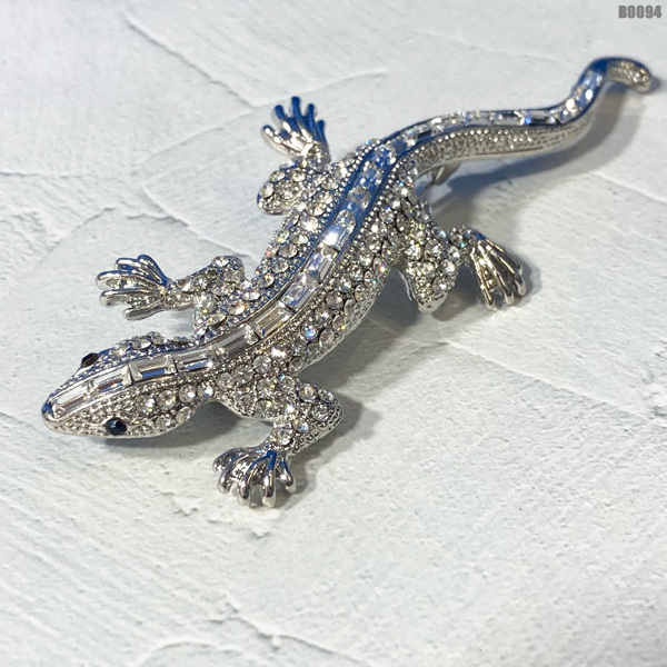 - 送料無料!! CZダイヤ かわいい とかげ モチーフ ブローチ リザード ビッグブローチ ゴージャス きらきら パーティー 爬虫類◇B-0094