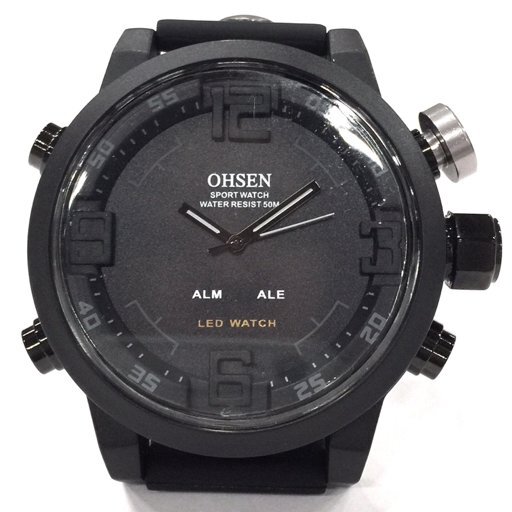 > OHSEN クォーツ 腕時計 メンズ AD2820 ブラック 稼働品 ファッション小物 メンズ ラウンドフェイス