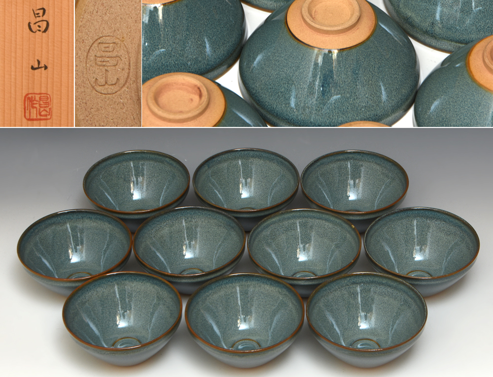 > 原平窯 昌山(造)禾天目数茶碗 10客揃 共箱 京焼 茶道具 組茶碗 陶磁器 u1038o
