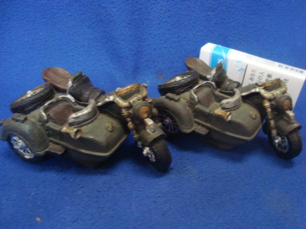 - 「置物 アンテークオートバイ・サイドカー軍用オートバイ? 2ケ組 重さ 1ケ 180g」