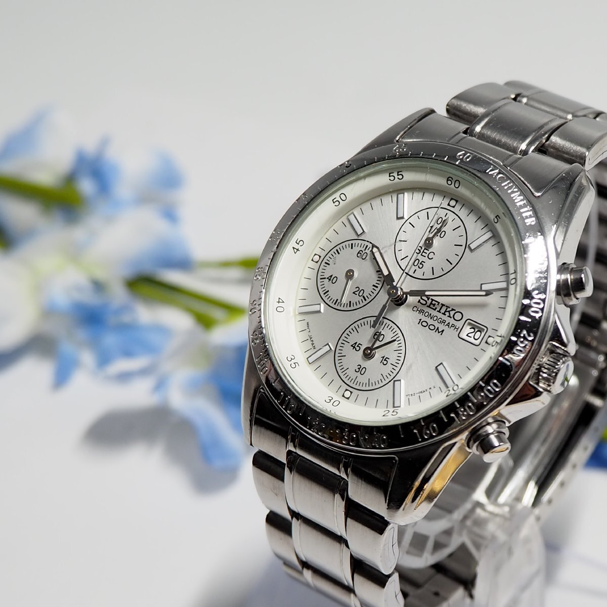 ★★★★ セイコー SEIKO CHRONOGRAPH 100M クロノグラフ デイト メンズ 腕時計 H194 中古★★★★
