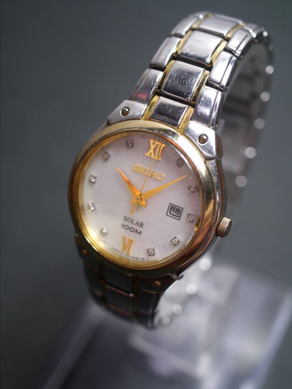 > セイコー SEIKO ソーラー SOLAR 3針 デイト 純正ベルト V137-0AX0 女性用 レディース 腕時計 ab792 稼働品