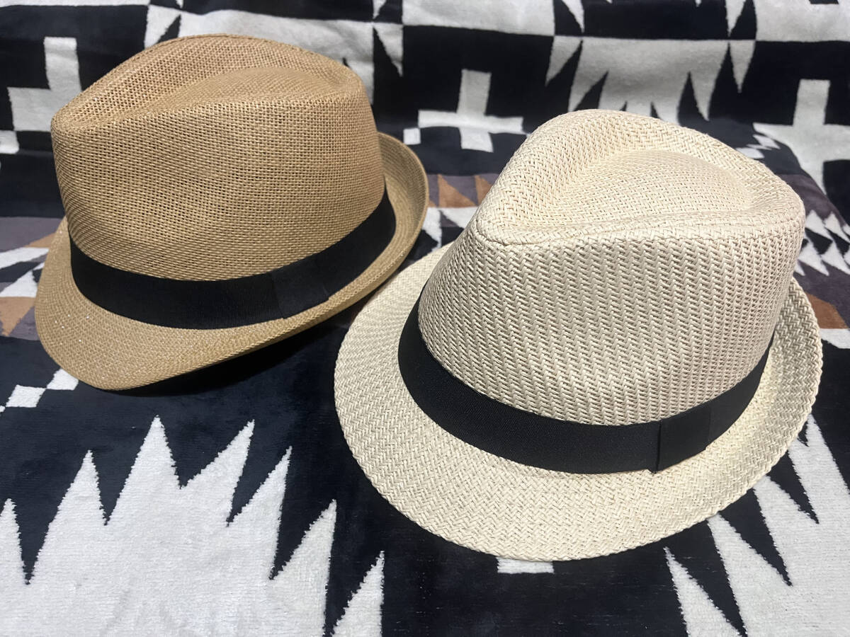 - 2点セット 帽子 中折れハット メンズ レディース 男女兼用 キャップ キャップ ソフト帽 麦わら帽 ハット ブラウン 白ベージュ 010
