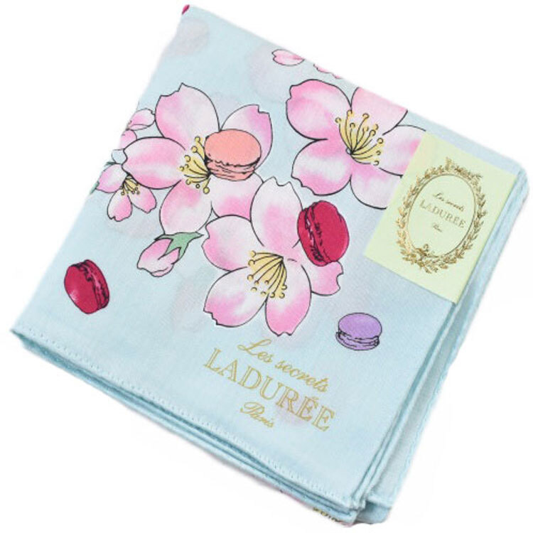 - ラデュレ ハンカチ 1枚 レディース ブランド スカイブルー フラワー 桜 マカロン プリント 女性 婦人