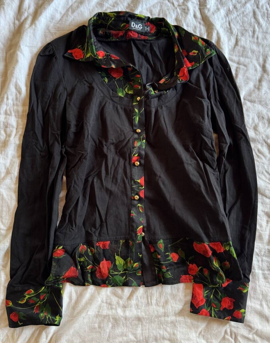 - ディー&ジー ドルガバ ドルチェ&ガッバーナ D&G ロゴ刺繍 長袖シャツ S 花柄