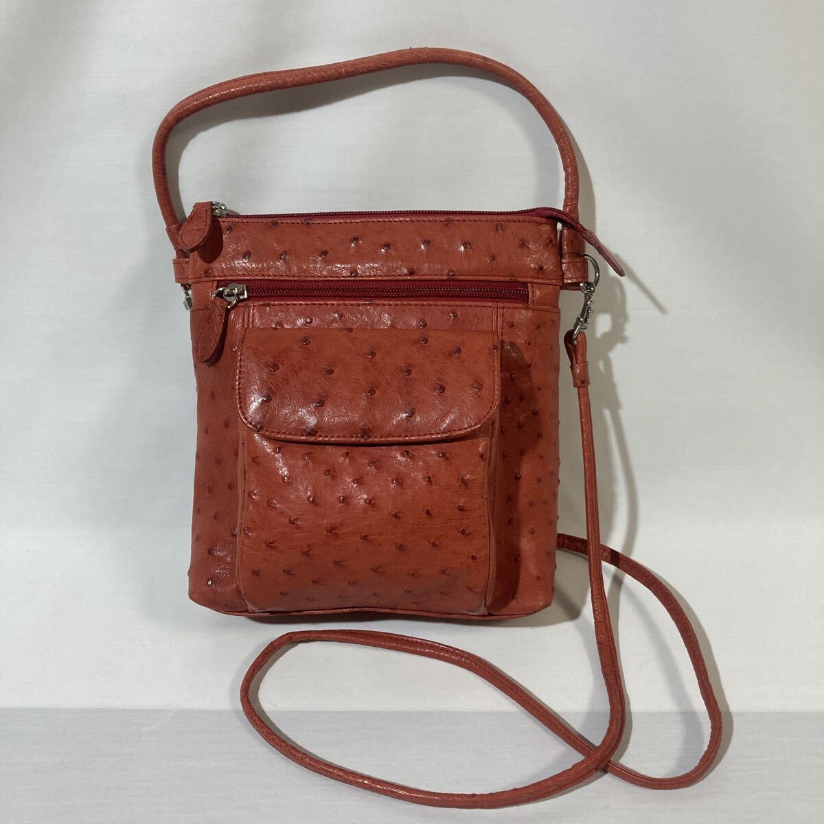 - ロダニア オーストリッチ 2way ショルダーバッグ ハンドバッグ オレンジ エキゾチックレザー