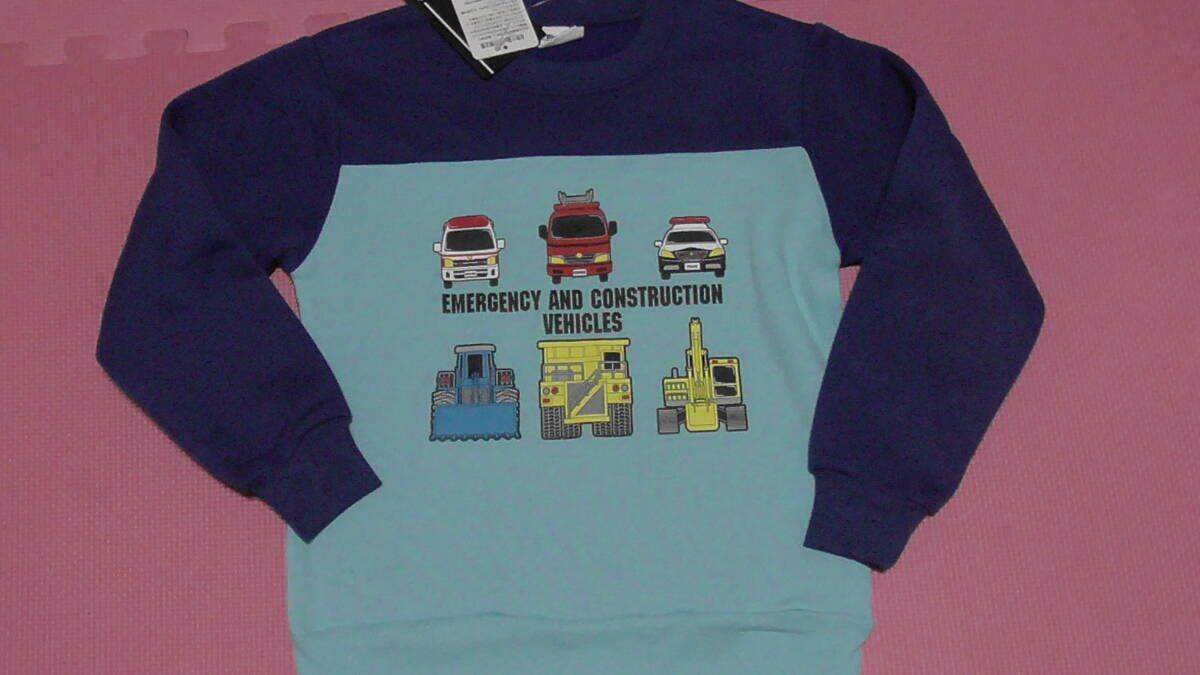 - 新品 130 働く車柄 長袖トレーナー パトカー 消防車 救急車 パワーショベル ホイールローダー ダンプカー 男の子 出初式に 120〜 送料無料