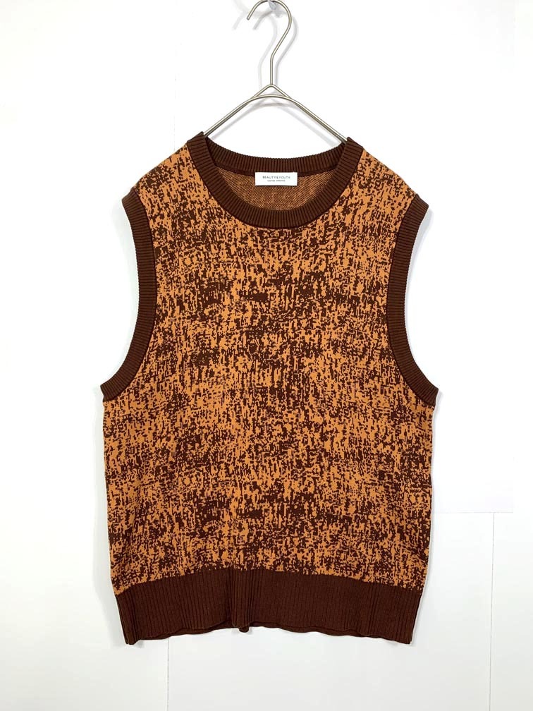 > ゆうパケットOK BEAUTY & YOUTH ビューティ&ユース ユナイテッドアローズ ジャカードクルーネックショート ベスト オレンジ ■■