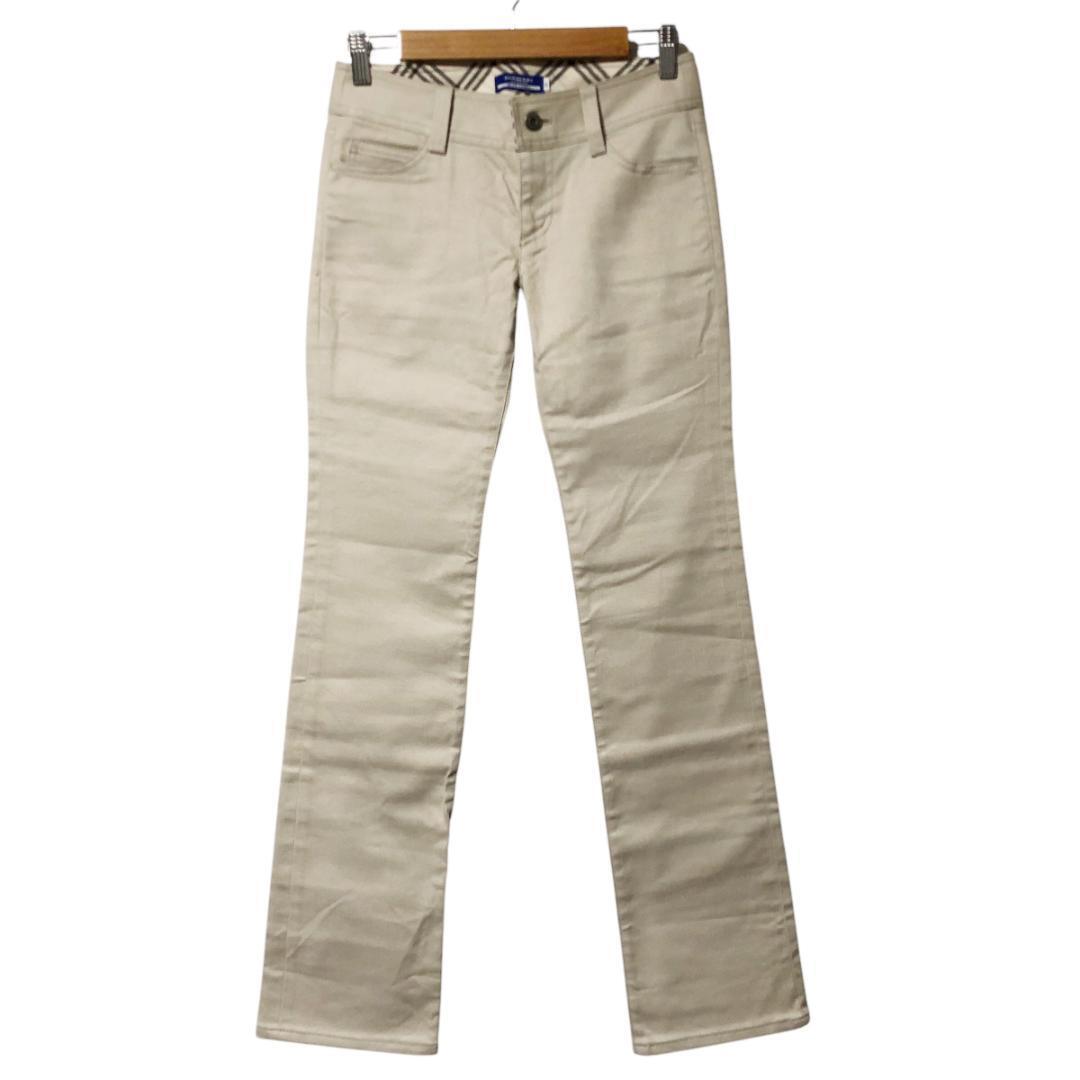 - BURBERRY BLUE LABEL バーバリーブルーレーベル コットン パンツ チノパン ストレッチ ローライズ 36 グレージュ チェック フレア M4