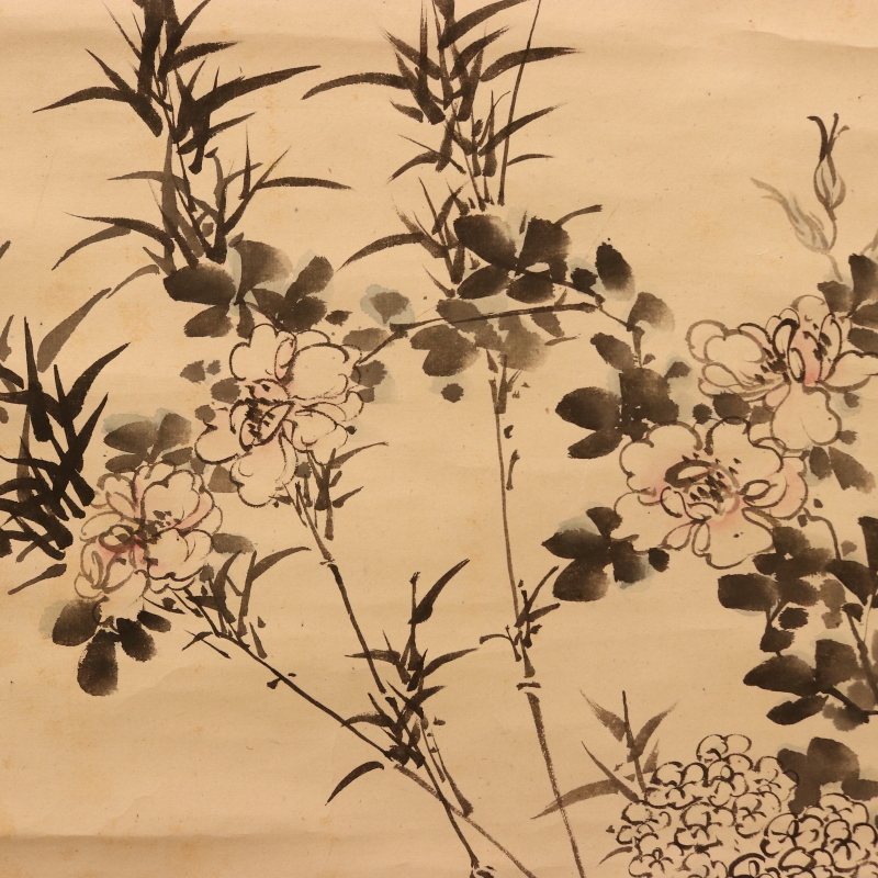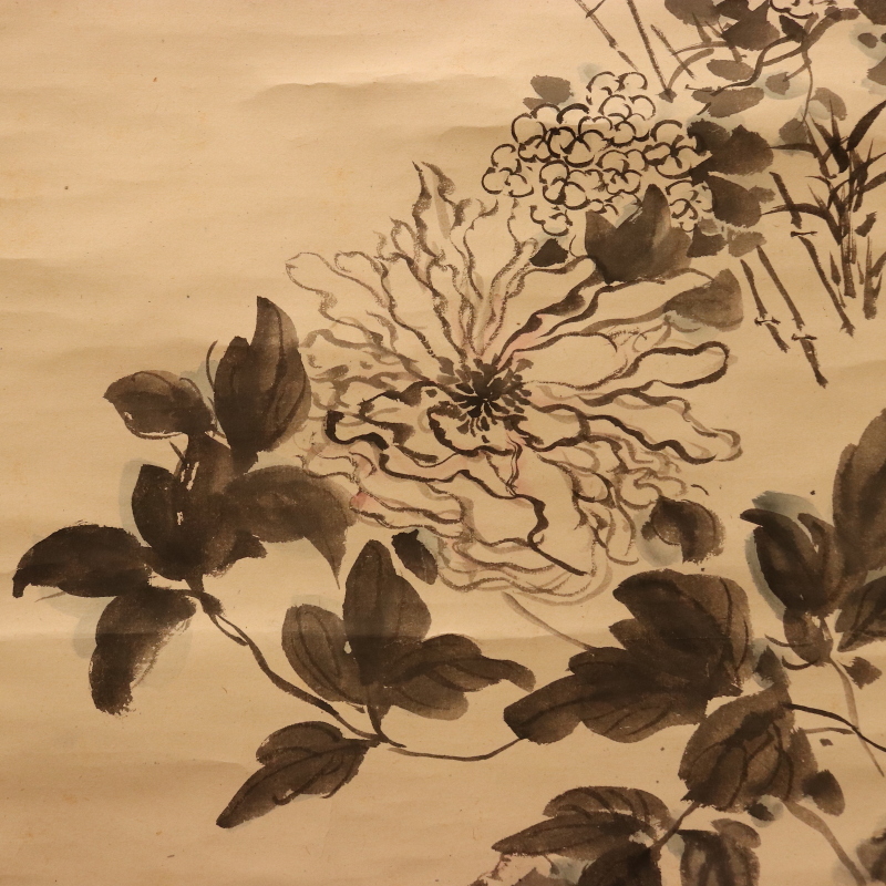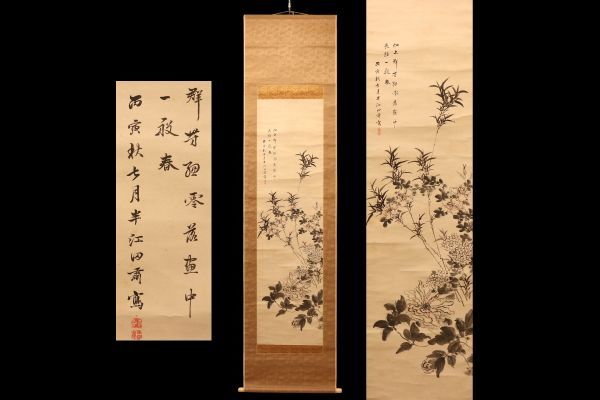- 177■【真作】岡田半江 「群芳図」共箱 二重箱 紙本 肉筆 米山人の子 大阪の人 江戸時代 掛軸