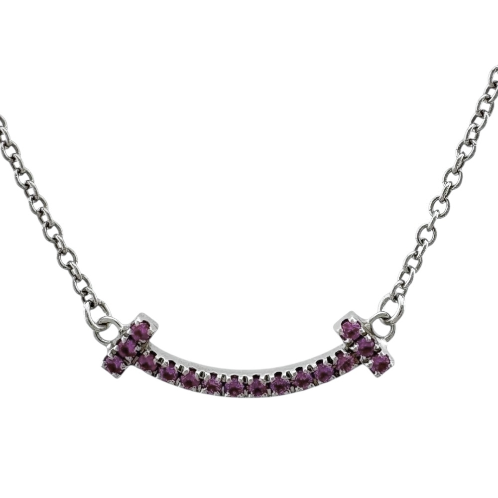 > ティファニー Tスマイル ネックレス 18金 K18ホワイトゴールド ピンクサファイア レディース TIFFANY&Co. 中古 美品