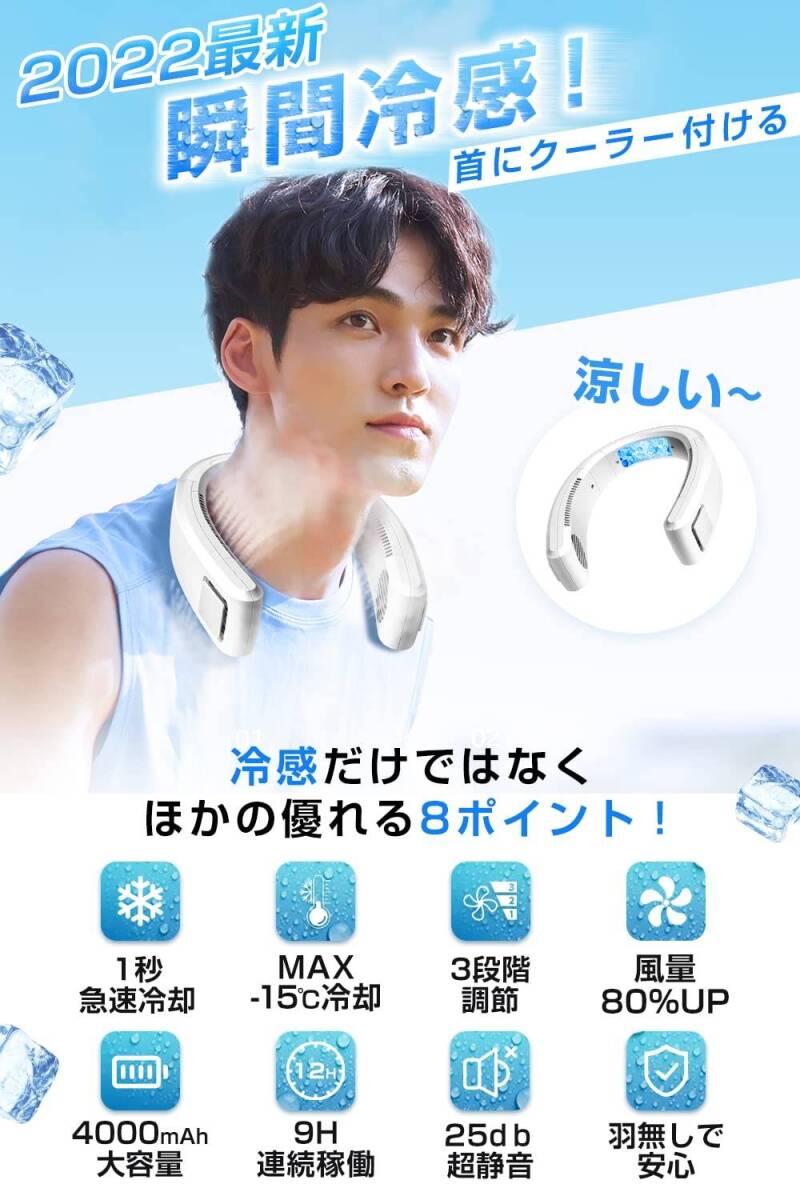 - 携帯扇風機 ネッククーラー 冷却ブレート付き 首掛け