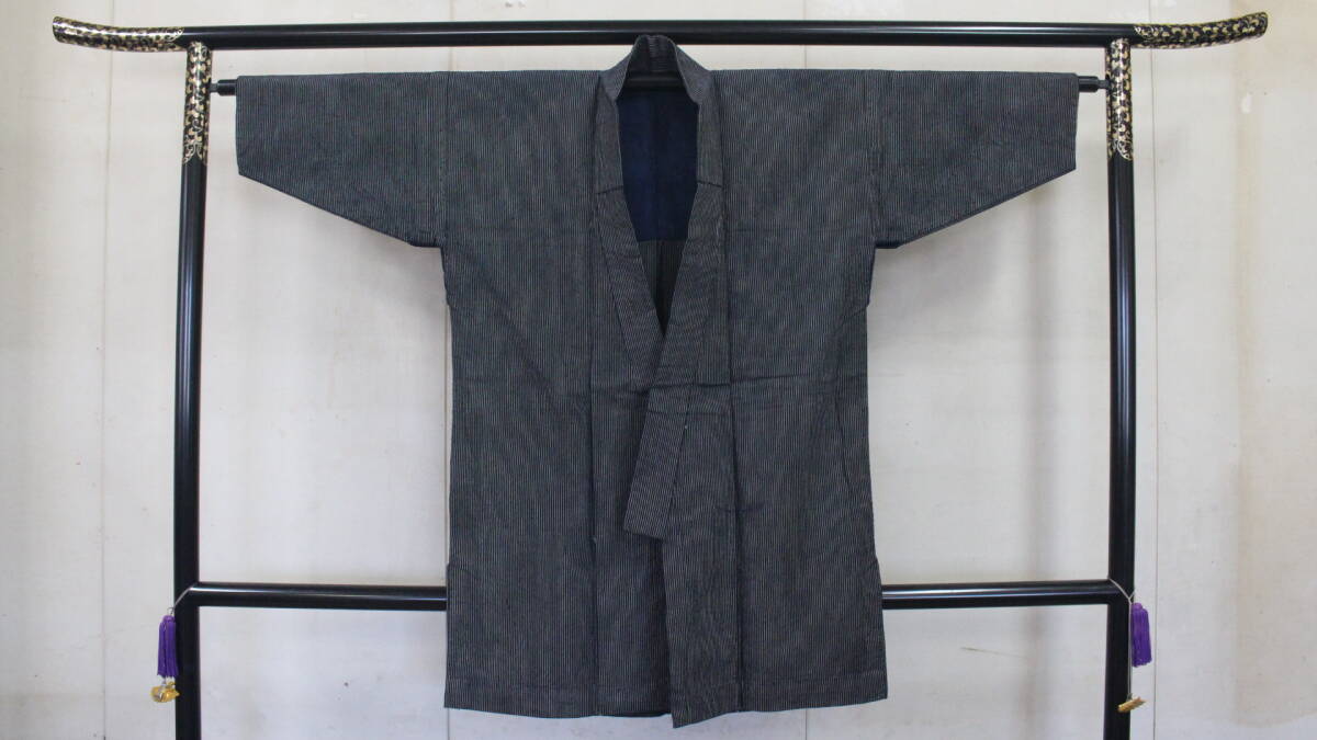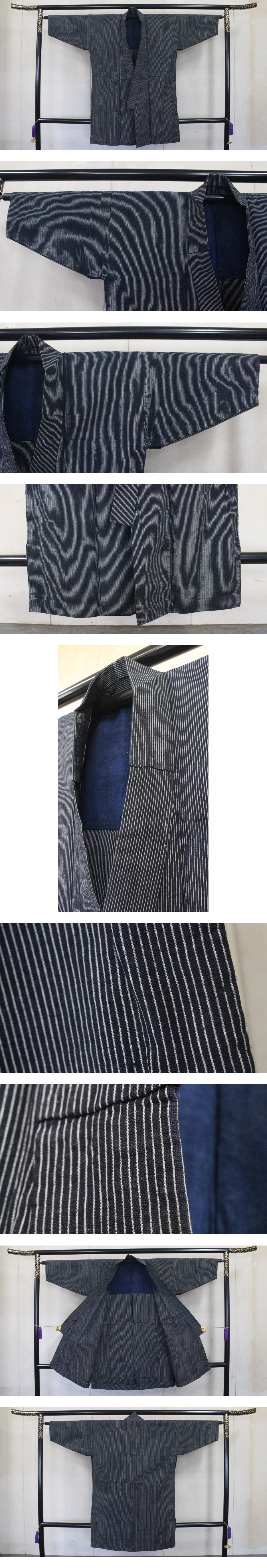 - 【文明館】藍染木綿 縞絣 時代物 日本着物和服 タ99