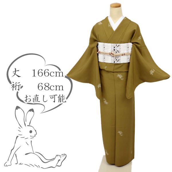 - 【小紋】 単衣 長尺 花うさぎ江戸小紋柄 シンプル飛び柄 正絹着物 KY4-47