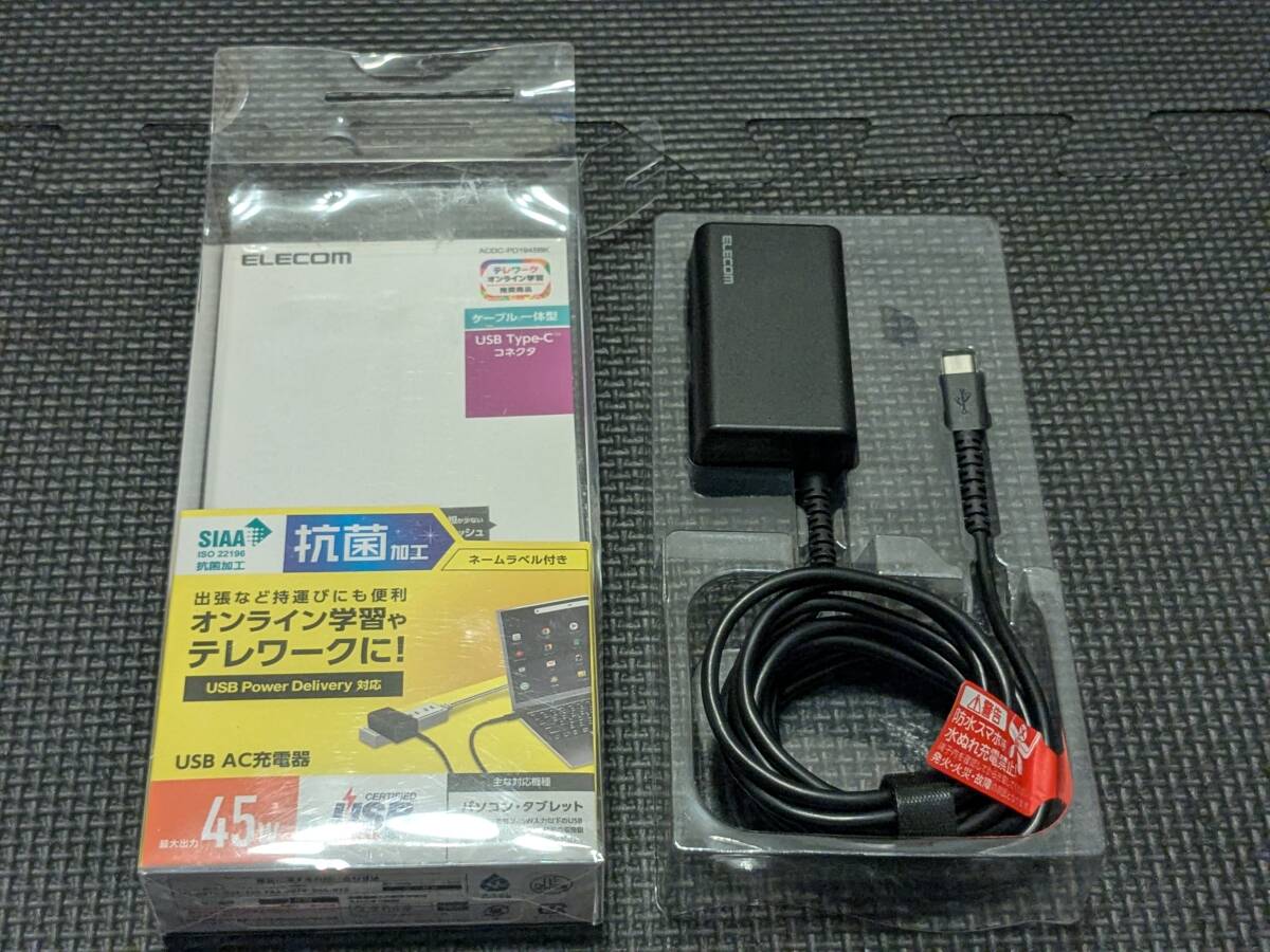 > ◎0709u1945 エレコム 45w USB-C ACアダプター USB Power Delivery認証 ケーブル一体型 抗菌 2m ブラック ACDC-PD1945BK