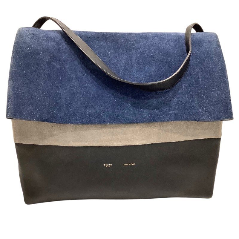 - CELINE セリーヌ オールソフトワン バッグ レザー スエード ネイビー ブラック ショルダーバッグ 【中古】JA-24390