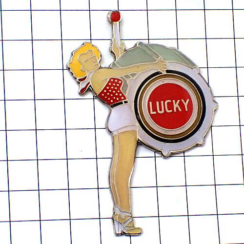 - ピンバッジ・煙草ラッキーストライク女の子と太鼓 LUCKY-STRIKE PINUP PERCUSSION USA◆フランス限定ピンズ