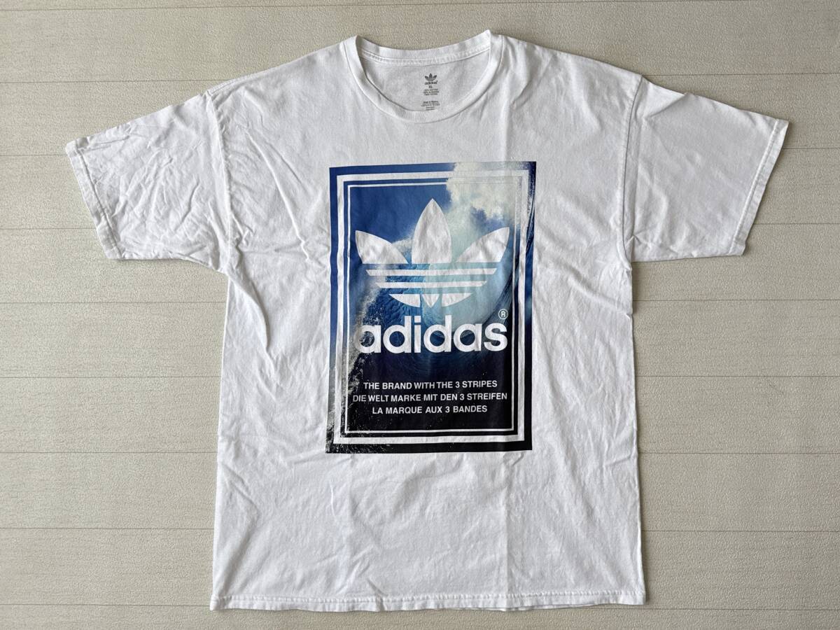 > ☆送料無料☆ adidas アディダス USA直輸入 古着 半袖 ロゴ Tシャツ メキシコ製 メンズ XL ホワイト トップス 中古 即決