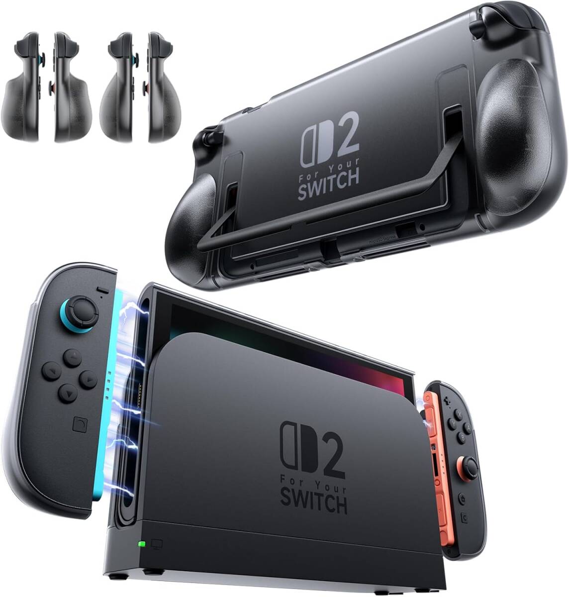 - Nintendo Switch2ケース|ドック対応・JoyConはケース装着のまま取り外し可能・スタンド使用可・大小グリップセット付 マットブラック