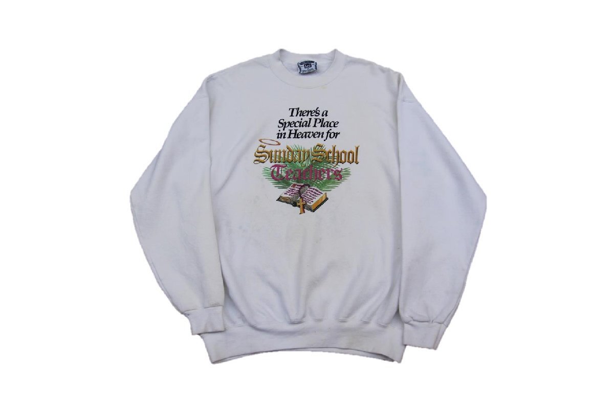 - 80s 90s VINTAGE ヴィンテージ USED 古着 Lee L/S Print Sweat Shirts リー プリントスウェットシャツ White 白 XL Sunday School USA製