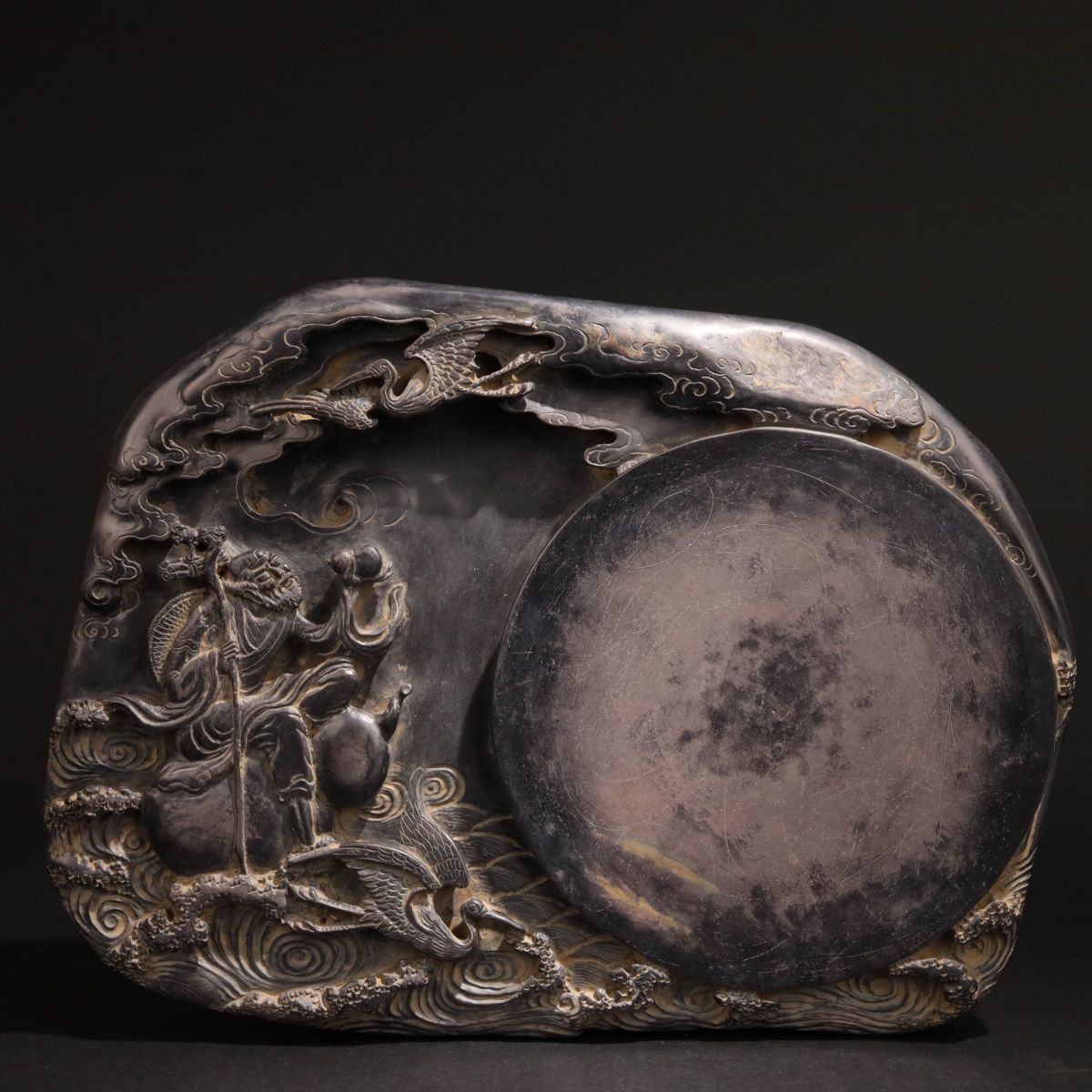 - 【永】 清時代 呉昌碩銘 端石彫 仙人渡海硯 極細工 端渓硯 書道具 文房具 置物擺件 古美術品 時代物 古董品 収集 旧家蔵出 中国唐物 A6